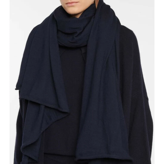 The navy N°181 Cloth scarf from Extreme Cashmere is made from the label’s signature cashmere-blend knit. It has a long, wide shape with rolling edges.
