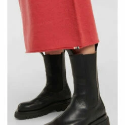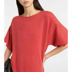 The N°196 Tee sweater dress from Extreme Cashmere has a T-shirt dress-inspired silhouette. Knitted from pure cashmere, this red design has a loose fit, dropped shoulder seams, and a midi hem.
