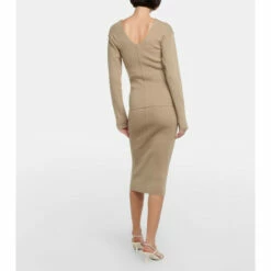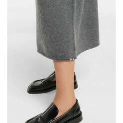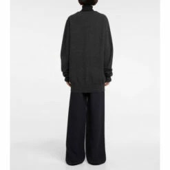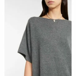 The N°196 Tee sweater dress from Extreme Cashmere has a T-shirt dress-inspired silhouette. Knitted from pure cashmere, this dark gray design has a loose fit, dropped shoulder seams, and a midi hem.