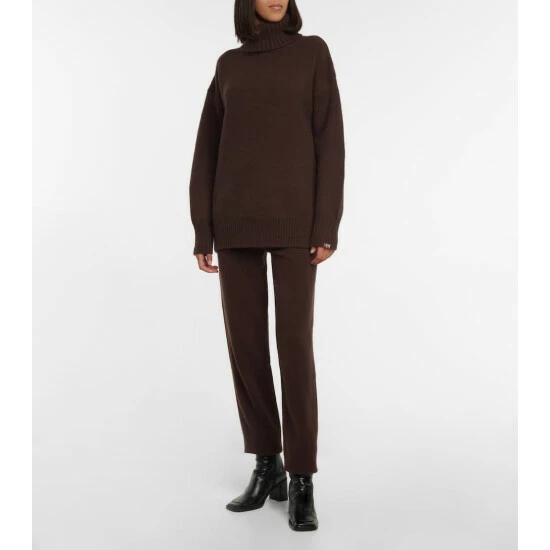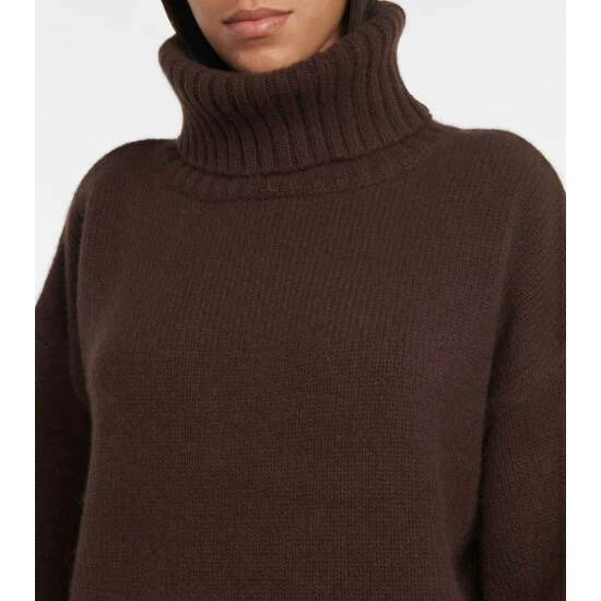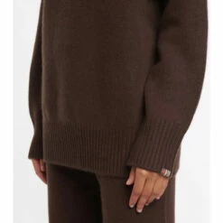 Extreme Cashmere’s N°20 Oversize Xtra turtleneck sweater is the coziest option for colder weather. It’s made from a heavy cashmere-blend knit in dark brown and features an oversized fit with dropped shoulders.