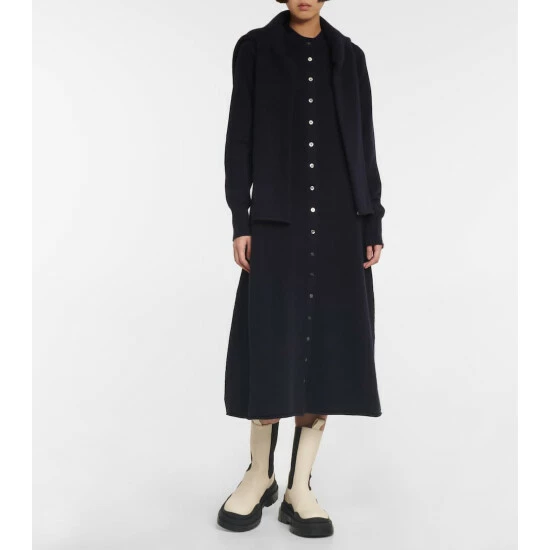 Extreme Cashmere breathes new life into sweater dressing with the N°208 Chic midi dress. It’s made from a black cashmere-blend to a flared shape, and has a lustrous Agoya button-down front.
