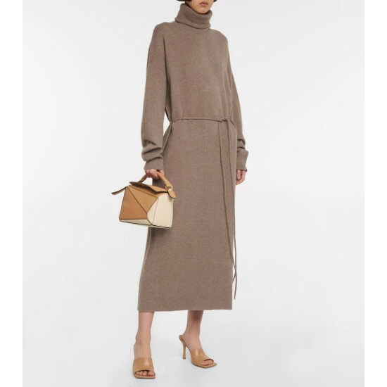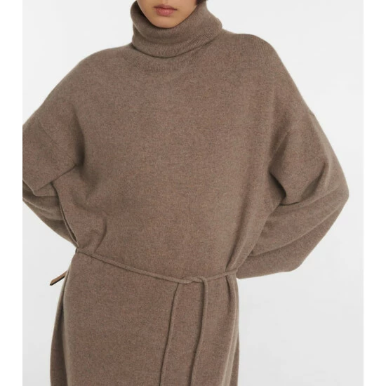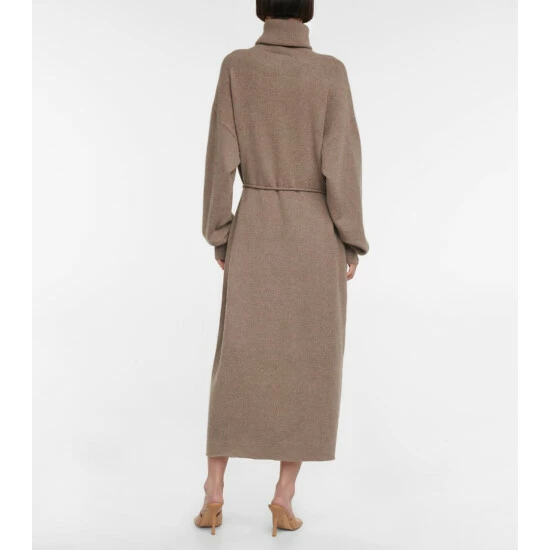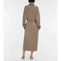 Extreme Cashmere’s brown N°209 Attraction is made from an ethically sourced cashmere-blend. The elegant turtleneck design cinches with a slim self-tie belt, and is finished with heat-locking ribbed-knit trims.