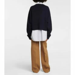 The dropped shoulder seams on the N°224 Clash sweater are a reoccurring design trait of Extreme Cashmere’s. This version is spun from a cashmere-blend to a relaxed silhouette with a slight volume through the sleeves.
