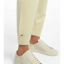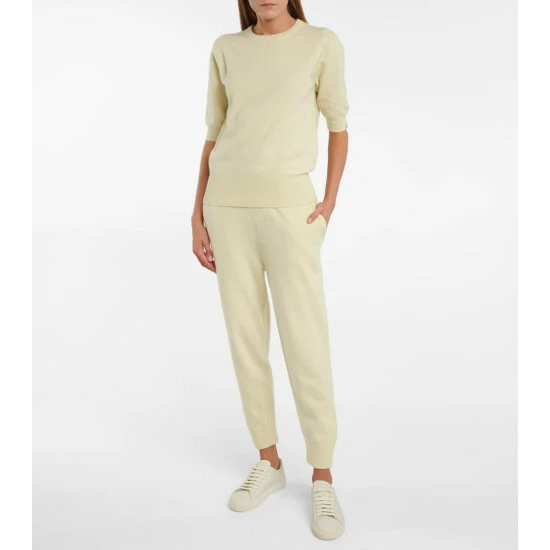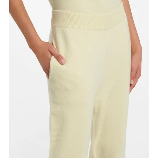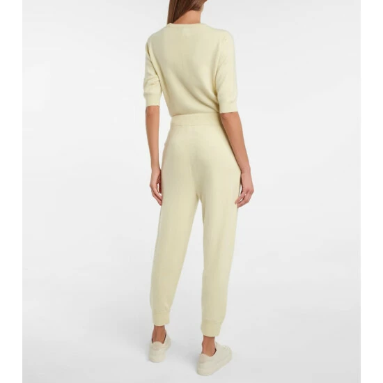 The yellow N°56 Yogi sweatpants from extreme cashmere are made from the label’s signature cashmere-blend knit. They feature a drop-crotch and fitted ankle cuffs.