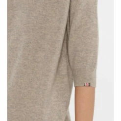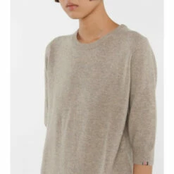 The N°63 Well sweater from extreme cashmere is made from the label’s signature cashmere-blend knit in beige. It features a crewneck, short sleeves and a straight hem.