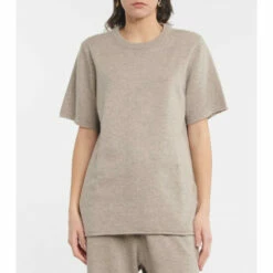 The N°64 T-shirt from Extreme Cashmere is made from the label’s signature cashmere-blend knit. It features a crewneck, raw-cut sleeves, and a rolled hem.