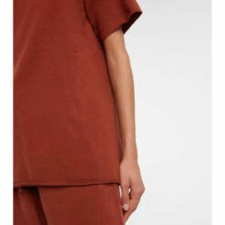 The red N°64 T-shirt from extreme cashmere is made from the label’s signature cashmere-blend knit. It features a crewneck, raw-cut sleeves and a rolled hem.