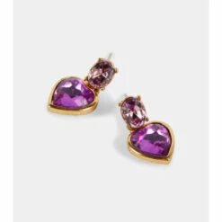 Finish your occasionwear looks with the Baby Heart earrings from Oscar de la Renta. They have beveled purple heart-shaped crystal pendants, backed with antiqued gold-tone brass.