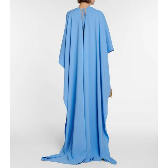 Make an unforgettable entrance in this head-turning gown from Oscar de la Renta. It’s made from a fluid silk-blend for a statuesque, brand-signature caftan silhouette with a bateau neckline, cape back, and floor-length drape.