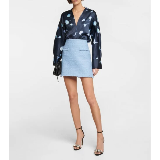 This miniskirt from Oscar de la Renta is a colorful wardrobe necessity. This piece is made in Italy from cotton-blend and features soft silk lining on the interior and intricate bouclé on the exterior.