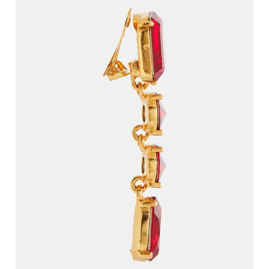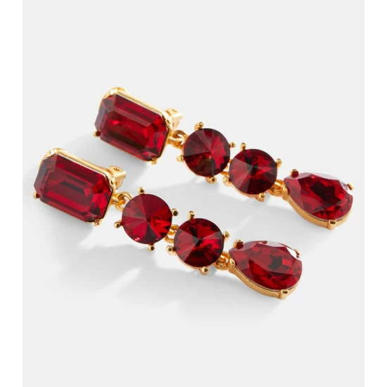 Red-carpet regulars will tell you that they adore Oscar de la Renta’s earrings just as much as its gowns: they’re the evening accessory of choice. Made in the USA from golden metal, this clip-on style features emerald-cut, round, and teardrop-shaped crystals in a rich shade of ruby red.