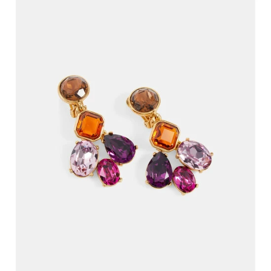 Suitable for unpierced ears, these earrings from Oscar de la Renta are set on metal hardware and detailing with various crystals.