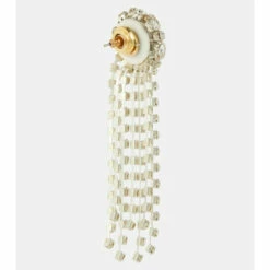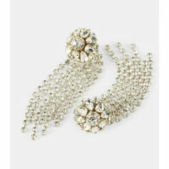 These earrings from Oscar de la Renta are defined with cascading strings of round-cut crystals. They’re made from silver-toned metal and feature crystal-clustered bases.