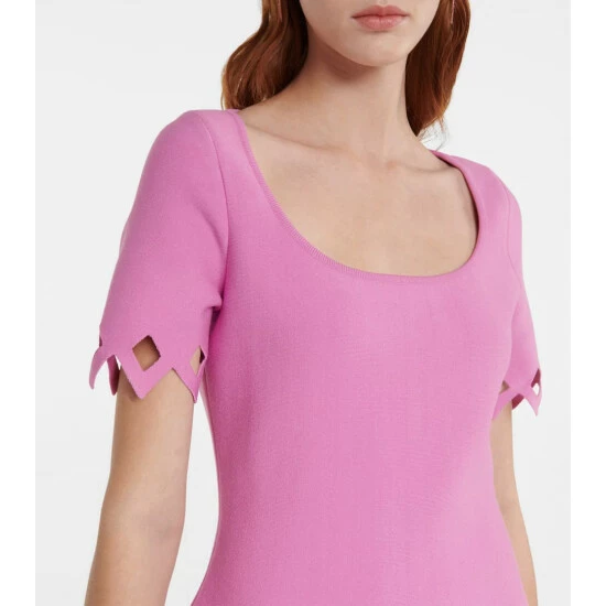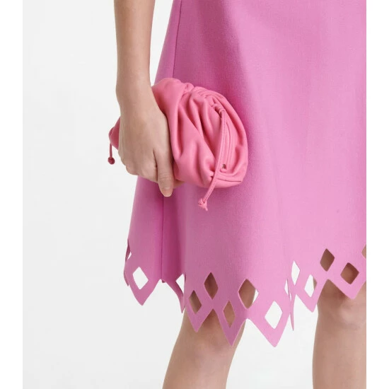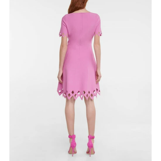 Oscar de la Renta’s occasionwear continues to evolve with this striking minidress. The fit-and-flare style is defined by diamond-shaped cutouts at the jagged sleeves and hemline.