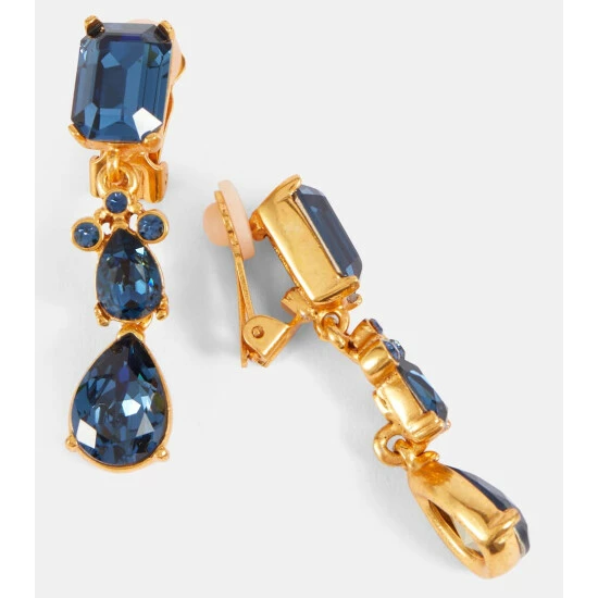 These clip-on drop earrings are the perfect finishing touch to your occasionwear looks. They’re made from brass with cascading blue crystal embellishments.