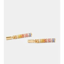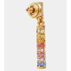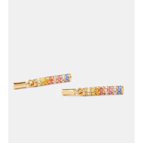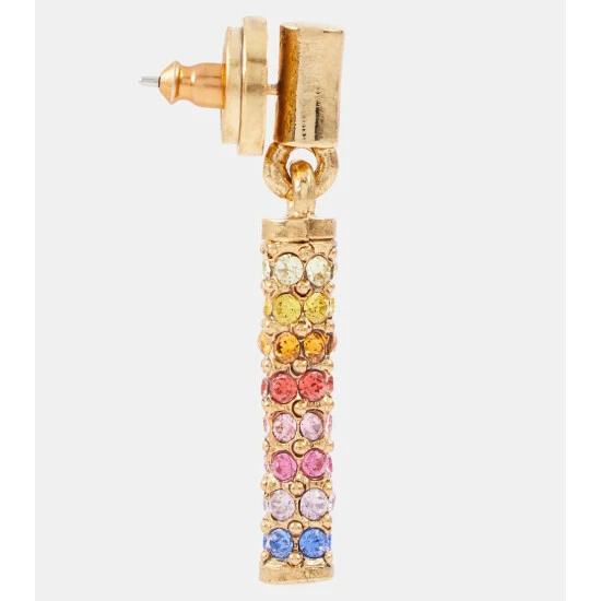 These colorful earrings from Oscar de la Renta will polish off day-to-dark looks. The cylindrical pendants are embedded with crystals and attached to organically shaped gold-tone brass.