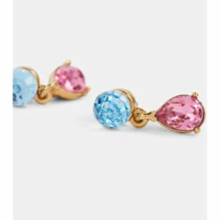 Add color into everyday accessorizing with these drop earrings from Oscar de la Renta. They’re made from gold-tone brass with prong and bezel-set crystal embellishments.