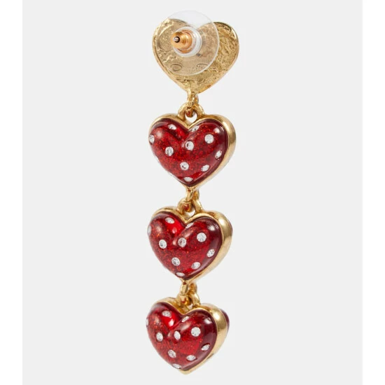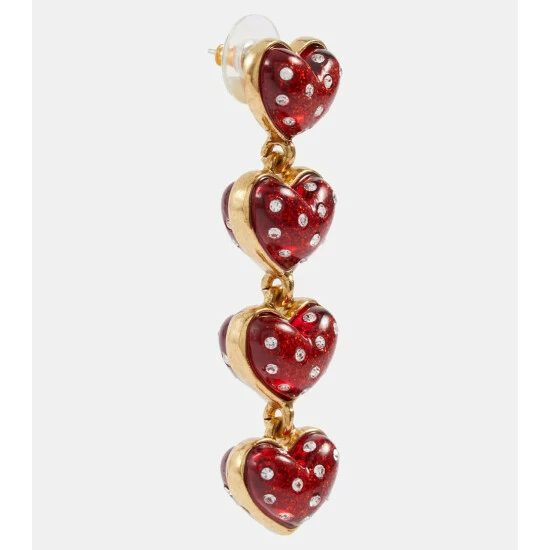 Take a romantic approach to jewelry with these earrings from Oscar de la Renta. Made from gold-tone metal with crystal embellishments, they’re suitable for pierced ears and take the form of trios of hearts.