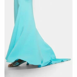 We can always rely on Oscar de la Renta for undeniably fabulous designs like this gown. Made from a lustrous silk blend, this style has a fitted silhouette that cascades into a beautiful short trail and features flower-inspired embroideries along the shoulders and neckline.