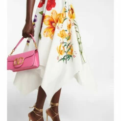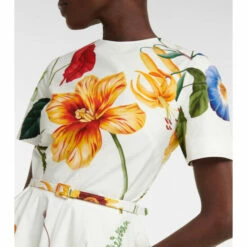 This intricate floral midi dress from Oscar de la Renta will inspire compliments on every outing. It’s made from a stretchy cotton-blend with a matching belt and handkerchief hemline.