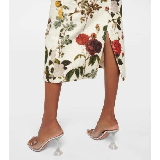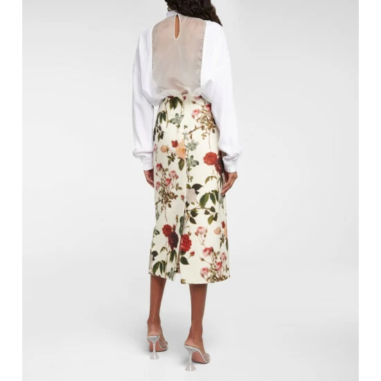 This pencil skirt from Oscar de la Renta features a floral motif that’s reminiscent of needle-point techniques. Made from a cotton blend, it has a high-rise waist and a midi length.