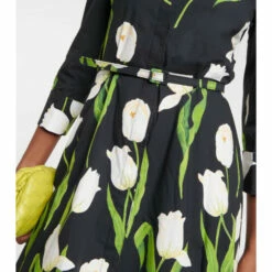 Embrace Oscar de la Renta’s signature elegance with this floral midi dress. Made from cotton-blend poplin, it features a concealed buttoned front, a pleated skirt, and a removable belt to cinch the waist.
