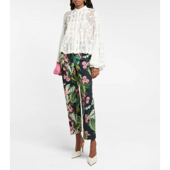 This elegant blouse from Oscar de la Renta is the ultimate repeat piece. Arriving with a silk tank lining, the timeless style is made from semi-sheer floral lace and features charming bell sleeves.