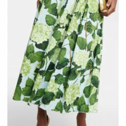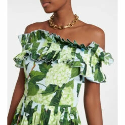 This maxi dress from Oscar de la Renta is made from cotton-blend jersey in an off-shoulder silhouette that’s trimmed with feminine ruffles and showcases an allover hydrangea print. It features short sleeves and pleat detailing at the flared skirt.