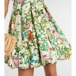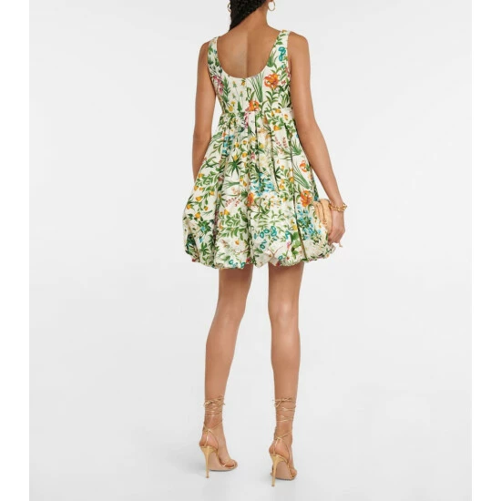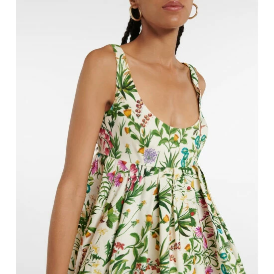 This floral minidress from Oscar de la Renta is a timeless option for warmer days. Made from poplin, it has a scoop neckline and an empire waist.