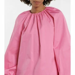 Designed with a gathered neckline and voluminous raglan sleeves, this blouse from Oscar de la Renta is romantic through and through. It’s made from a crisp cotton fabric and has a shirting-inspired rounded hem.