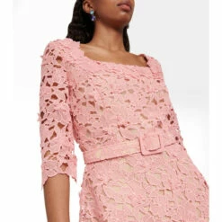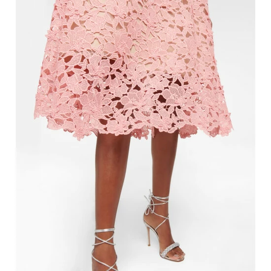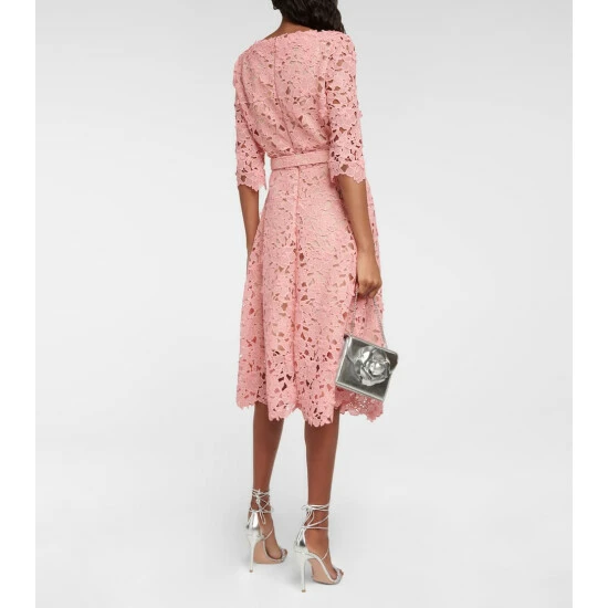 This sophisticated midi dress from Oscar de la Renta is made from guipure lace and lined with organza and crêpe de chine. It has a square neckline, elbow-length sleeves and a midi hem.