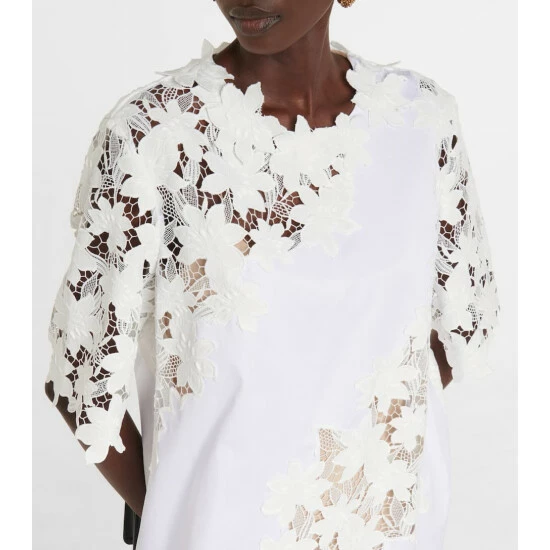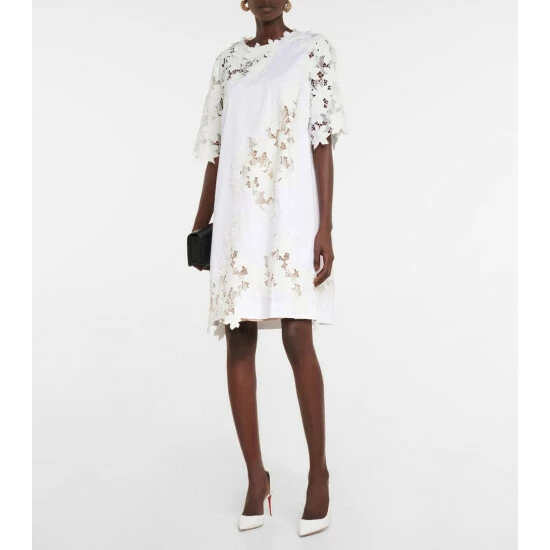 This romantic minidress from Oscar de la Renta features guipure lace panels. Made from cotton, it has an A-line silhouette and beige lining.