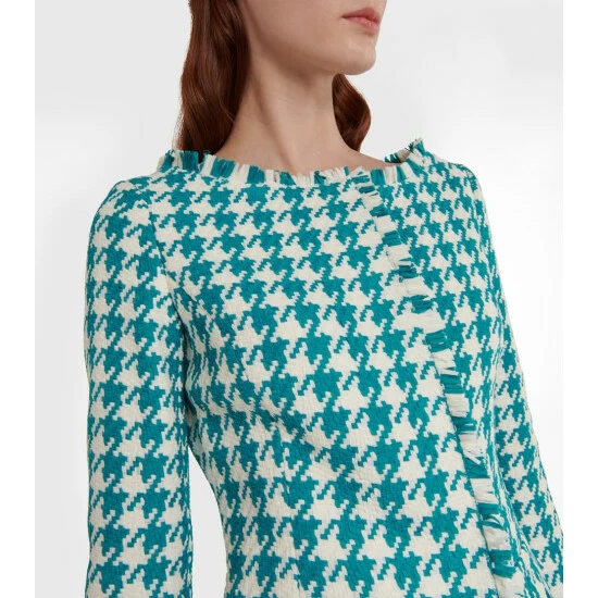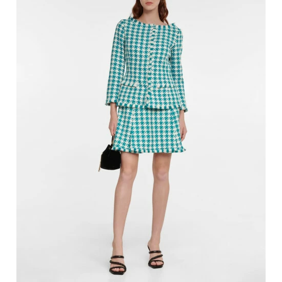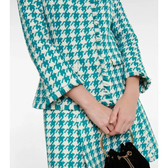 Refresh your capsule wardrobe with this vibrant tweed jacket from Oscar de la Renta. Crafted from teal houndstooth tweed, the long-sleeved design is finished with frayed hems.
