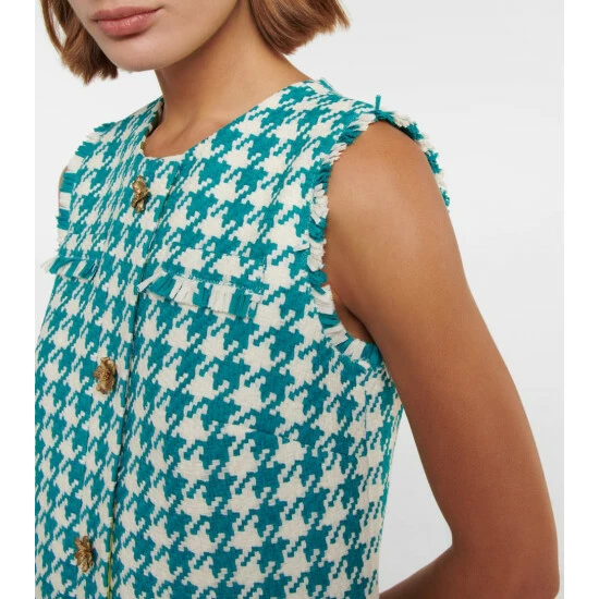 This shift-style minidress from Oscar de la Renta is a classic investment piece. It’s made from cotton and wool-blend tweed with light fringing and an intricately carved floral button-down front.
