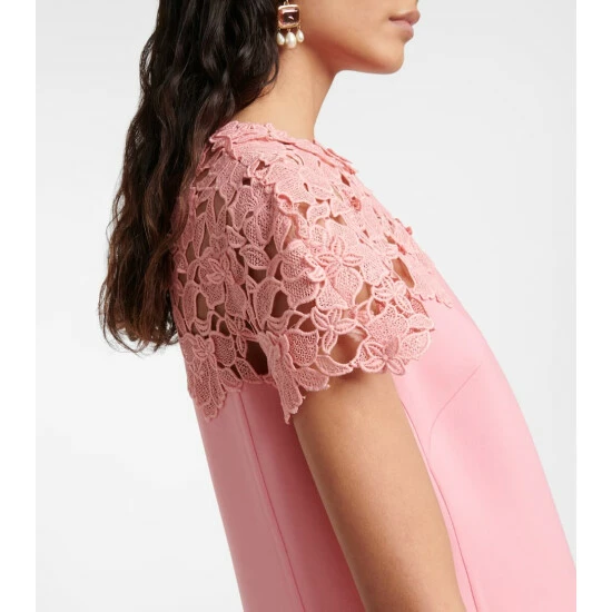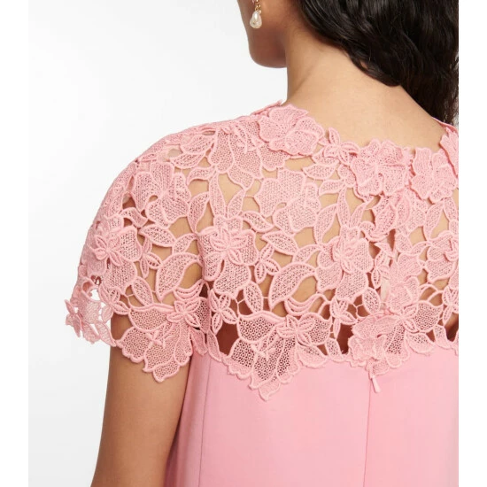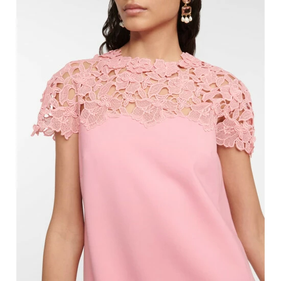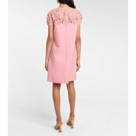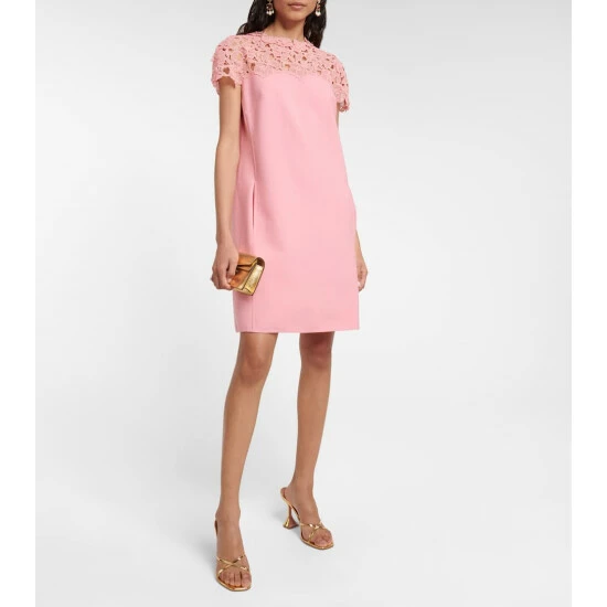 Embrace romantic designs like this minidress from Oscar de la Renta. It has a streamlined shift silhouette with a high neckline and with a charming lace overlay.