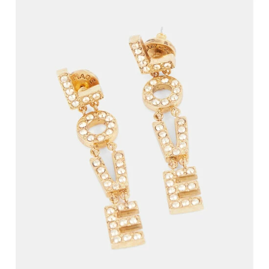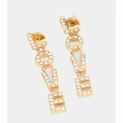The aptly named Love earrings from Oscar de la Renta spell out the message in a vertical drop design. They’re made from brass and embellished with sparkling crystals.