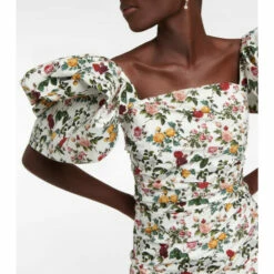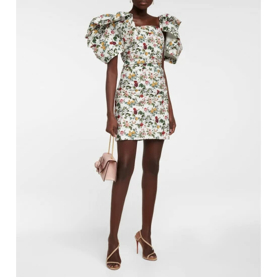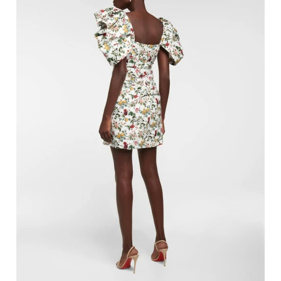 Beautiful floral prints are an Oscar de la Renta signature, as evidenced by this minidress. Made from cotton poplin, this style is defined by large puff sleeves and a gathered bodice.