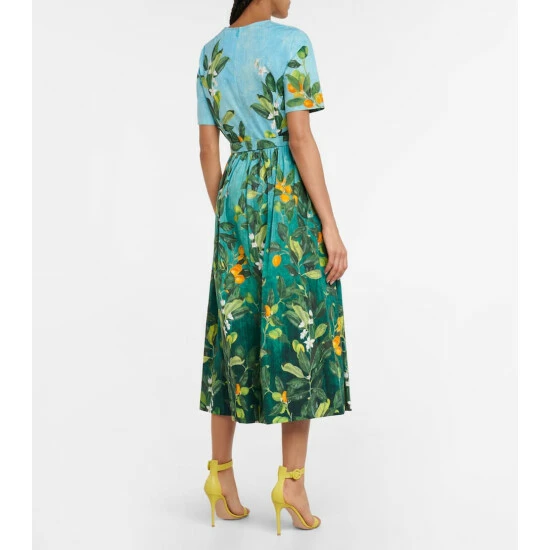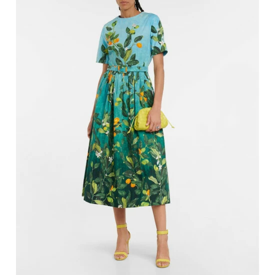 Summer parties are a breeze in designs like this Oscar de la Renta midi dress. Made from a stretchy cotton-blend, it features a dreamy floral print and matching belt to create a flattering fit-and-flare silhouette.