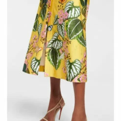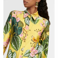 This shirt dress from Oscar de la Renta is made from jersey in a vibrant foliage print. This colorful design has a straight cut and a midi hem.
