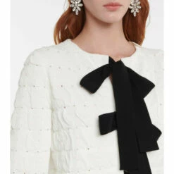 Oscar de la Renta’s romantic outlook extends to outerwear with this jacket. The lightly quilted style secures with a trio of contrasting ribbed self bow-ties.