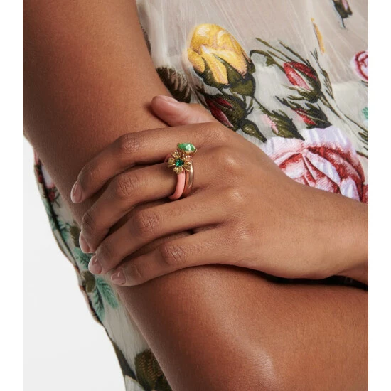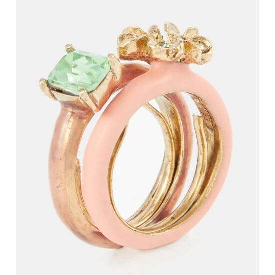These two rings from Oscar de la Renta can be stacked atop one another or worn separately. They’re made from brass, covered in resin, and embellished with crystals.