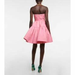 Effervescent colors and amplified volume define Oscar de la Renta’s eveningwear capsule. Made from cotton poplin in bubblegum pink, this strapless minidress has a reinforced, tiered construction and a concealed zip fastening.