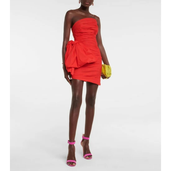 Oscar de la Renta ensures you’ll make a memorable entrance with this strapless minidress. Made from cotton poplin in deep scarlet red, it features ruching all over, an oversized bow detail, and a lining that provides structure.