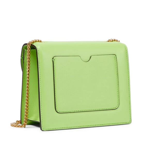 The Tro Mini shoulder bag from Oscar de la Renta is the perfect accessory to complement the brand’s romantic dresses. Made from fennel leather, the compact design features a flower appliqué and chainlink shoulder strap.