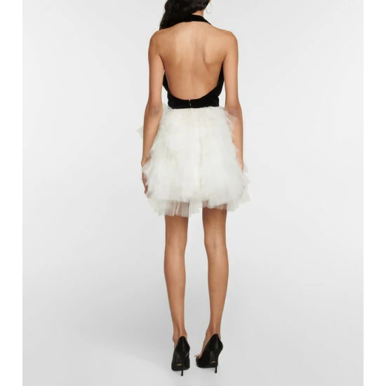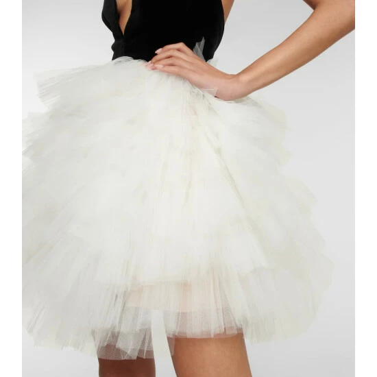 Add an ethereal touch to your cocktail edit this minidress from Oscar de la Renta. The monochrome style has a velvet top with a plunging V-neckline that flares into a frothy tulle skirt.