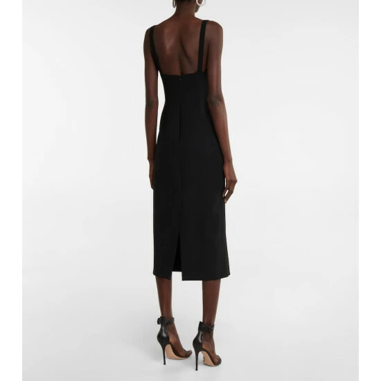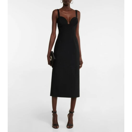 Make a statement with Oscar de la Renta’s glamorous designs. Crafted from black wool-blend, this dress fits tightly on the body from the heart-shaped neckline to the straight midi skirt.