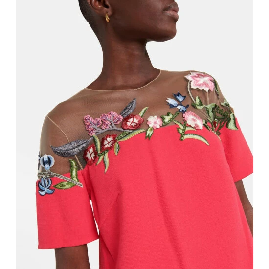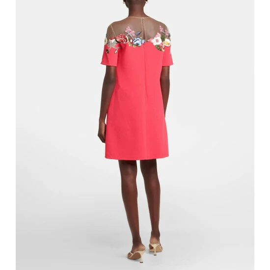 Embrace romantic designs like this minidress from Oscar de la Renta. Made from a soft wool-blend, the short-sleeved design arrives in a shift silhouette and is defined by magnificent floral embroidery at the sheer neckline.